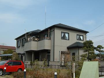 工事前の外観をとなりのマンションの敷地から撮影。屋根中央部に144/430のGP、